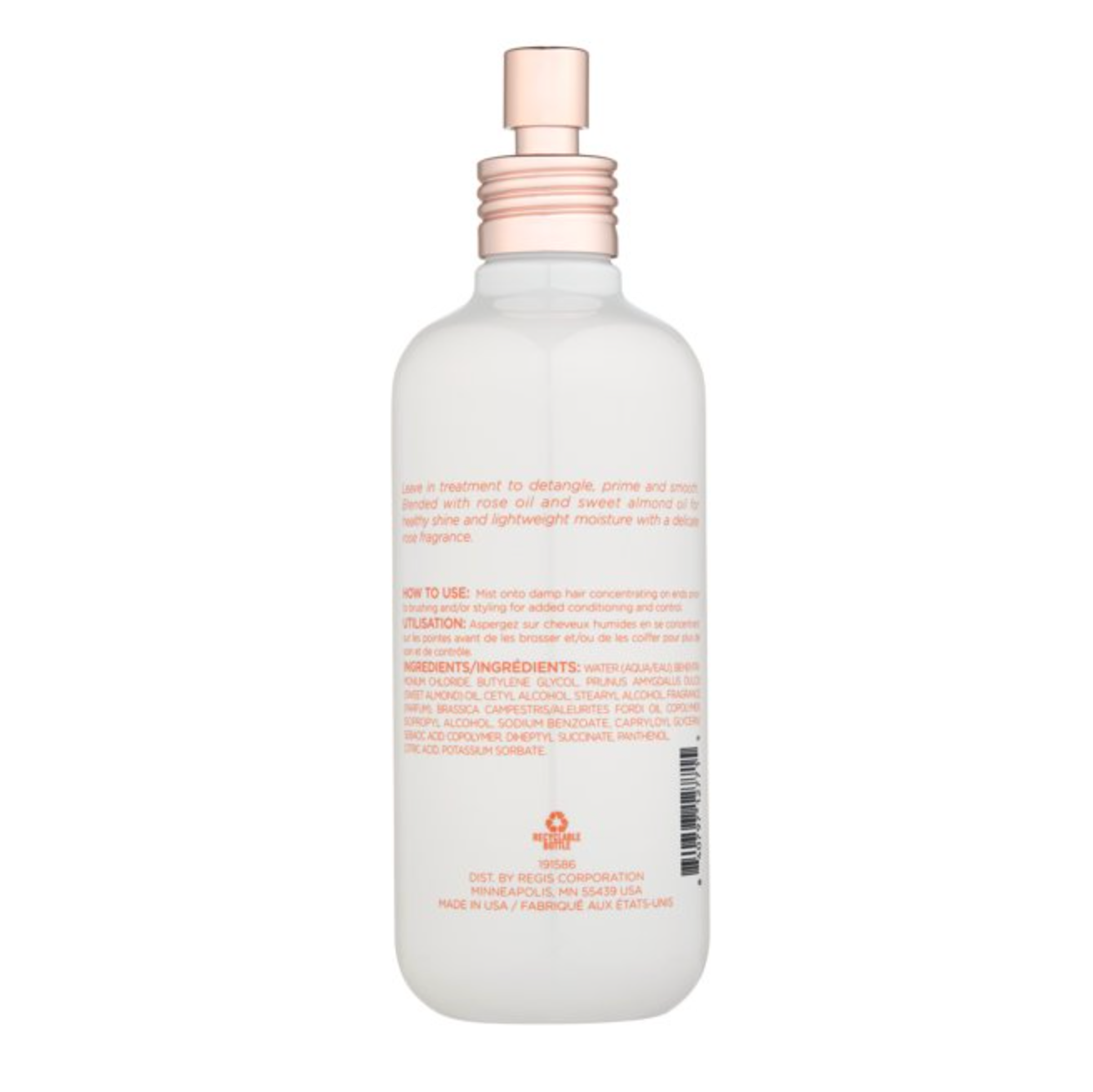 The Blossom Rose Repair Leave-In Conditioning Spray helps untangle hair and create a healthy shine that lasts all day. This treatment contains no sulfates. Use the mist prior to brushing your hair or styling it. It leaves your hair with a fresh rose scent and keeps your hair looking smooth and shiny.