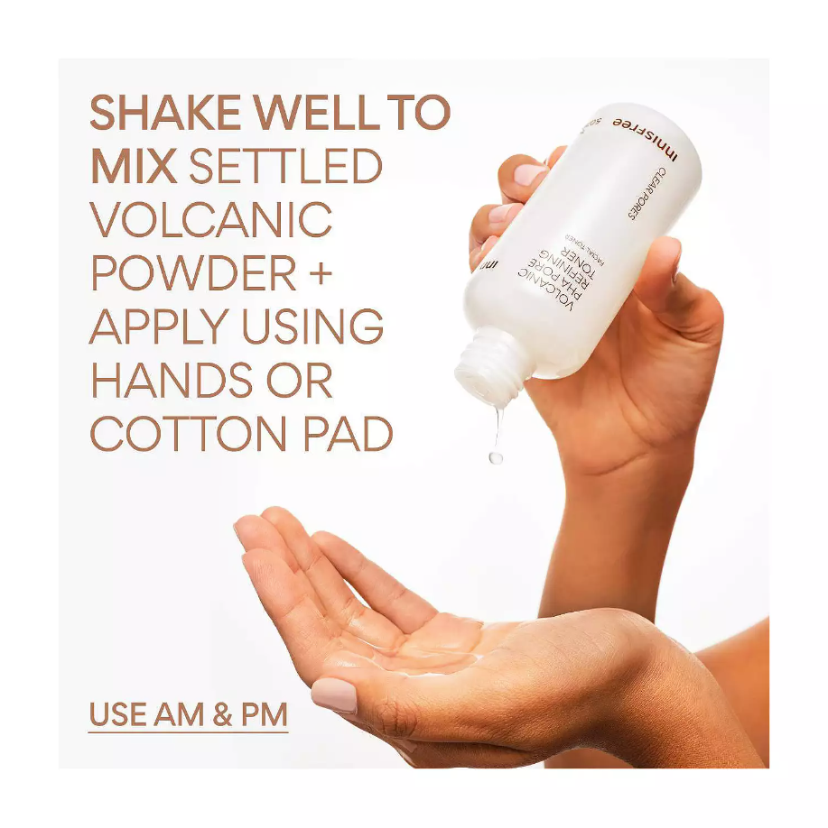 What it is:A bi-phase toner infused with volcanic clusters and PHA to absorb excess sebum and minimize the look of pores-for smooth, less shiny-looking skin.
