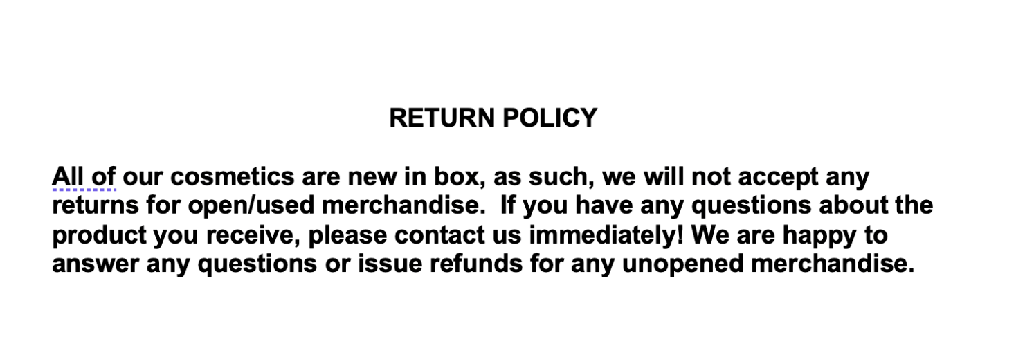 - No Returns on Open Items: We won’t accept returns for open/used merchandise.